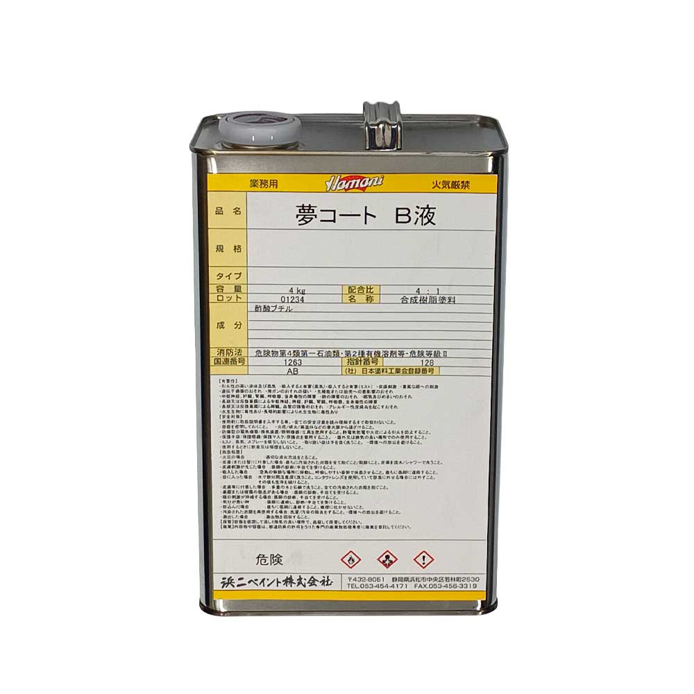 夢コート B液 4kg 浜二ペイント ※夢X後継品