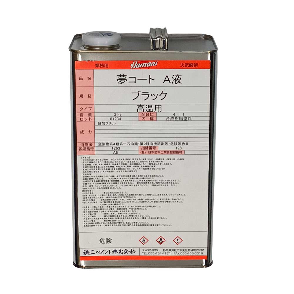 夢コート ブラック A液 高温用 3kg 浜二ペイント ※夢X後継品※10~14営業日で出荷