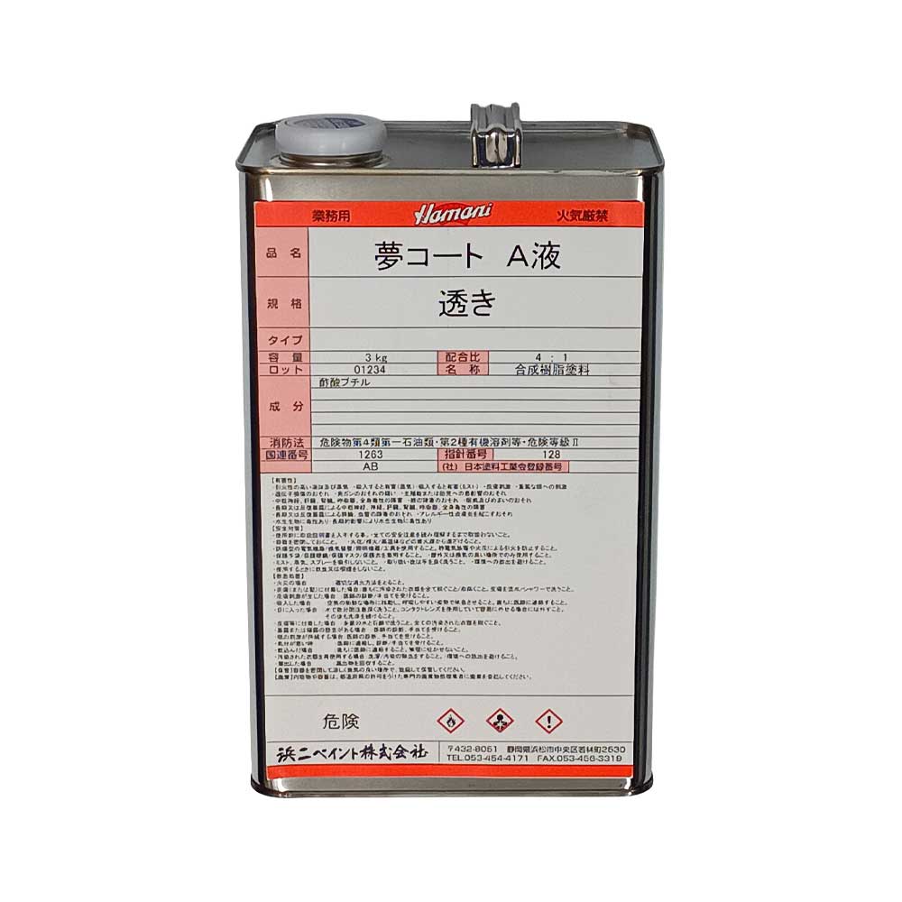 夢コート 透き A液 3kg 浜二ペイント ※夢X後継品※10~14営業日で出荷