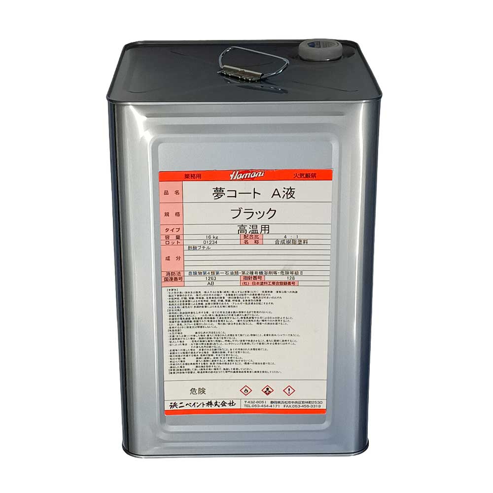 夢コート ブラック A液 高温用 16kg 浜二ペイント ※夢X後継品※10~14営業日で出荷