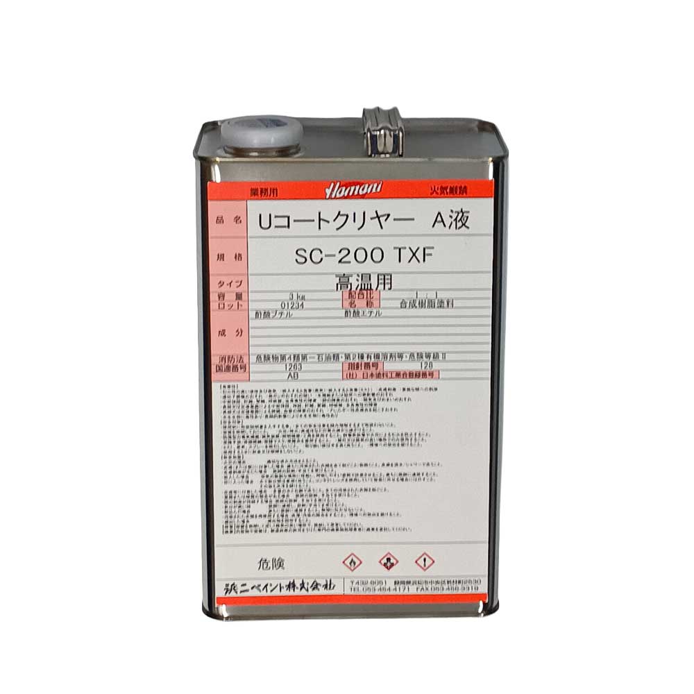 UコートクリヤーSC-200TXF 高温用 A液(主剤) 3kg 肉付き性の良いウレタンクリヤー 浜二ペイント