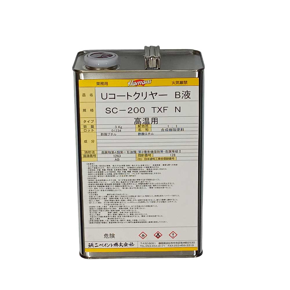 UコートクリヤーSC-200TXF(N) 高温用 B液(硬化剤) 3kg 難黄変タイプ 浜二ペイント