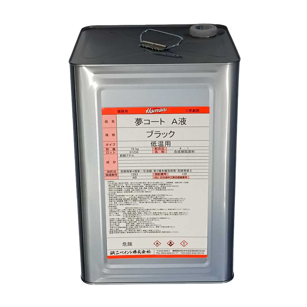 夢コート ブラック A液 低温用 16kg 浜二ペイント ※夢X後継品※10~14営業日で出荷