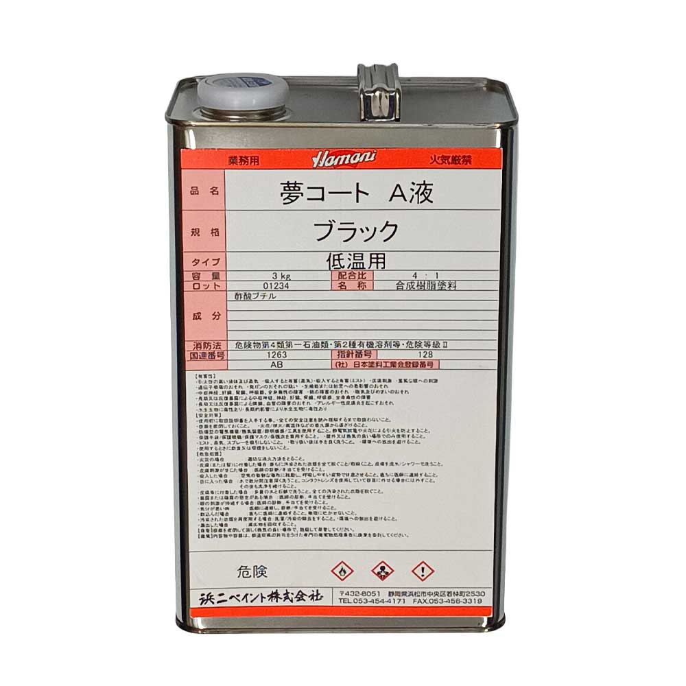 夢コート ブラック A液 低温用 3kg 浜二ペイント ※夢X後継品※10~14営業日で出荷