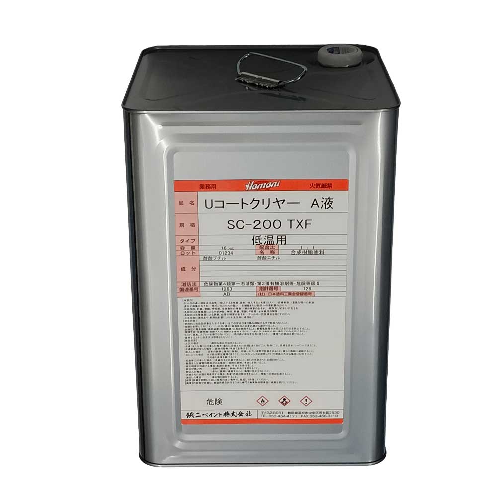 UコートクリヤーSC-200TXF 低温用 A液(主剤) 16kg 肉付き性の良いウレタンクリヤー 浜二ペイント
