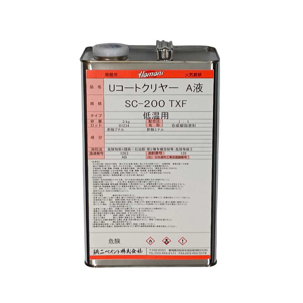 UコートクリヤーSC-200TXF 低温用 A液(主剤) 3kg 肉付き性の良いウレタンクリヤー 浜二ペイント