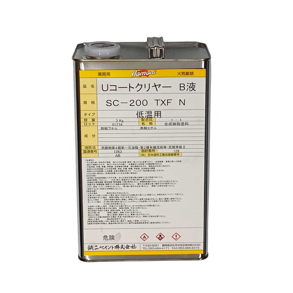 UコートクリヤーSC-200TXF(N) 低温用 B液(硬化剤) 3kg 難黄変タイプ 浜二ペイント