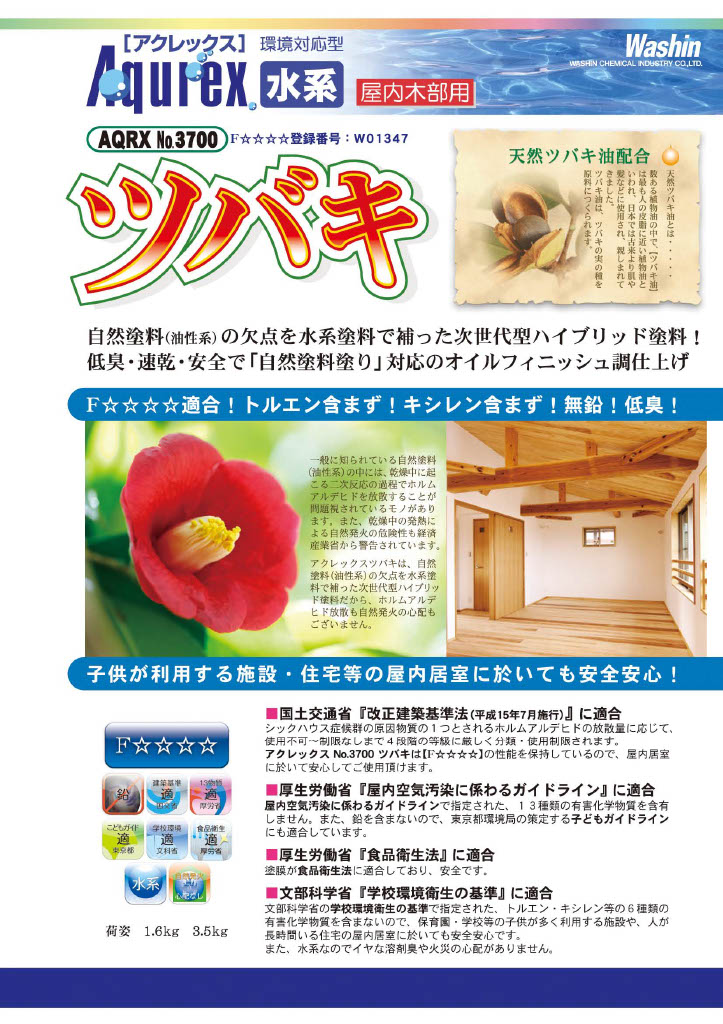Aqurex No.3700ツバキ 14kg アクレックス屋内木部用オイルフィニッシュ調仕上げ 和信化学工業 お取り寄せ品